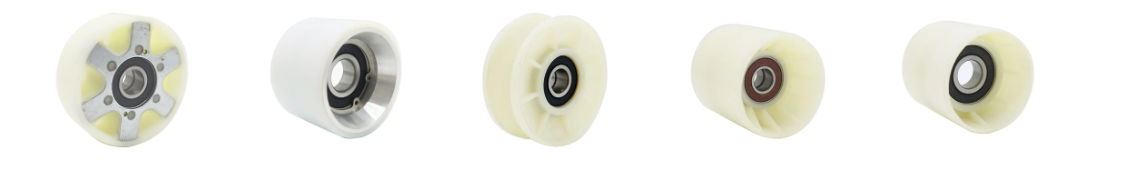 تقليل الاهتزاز: عندما تمر الخطوات فوق مفاصل قضبان التوجيه أو المناطق غير المستوية قليلاً، تمتص الحلقة الخارجية المرنة للبكرات التأثير، مما يمنع الصدمات الشديدة.
