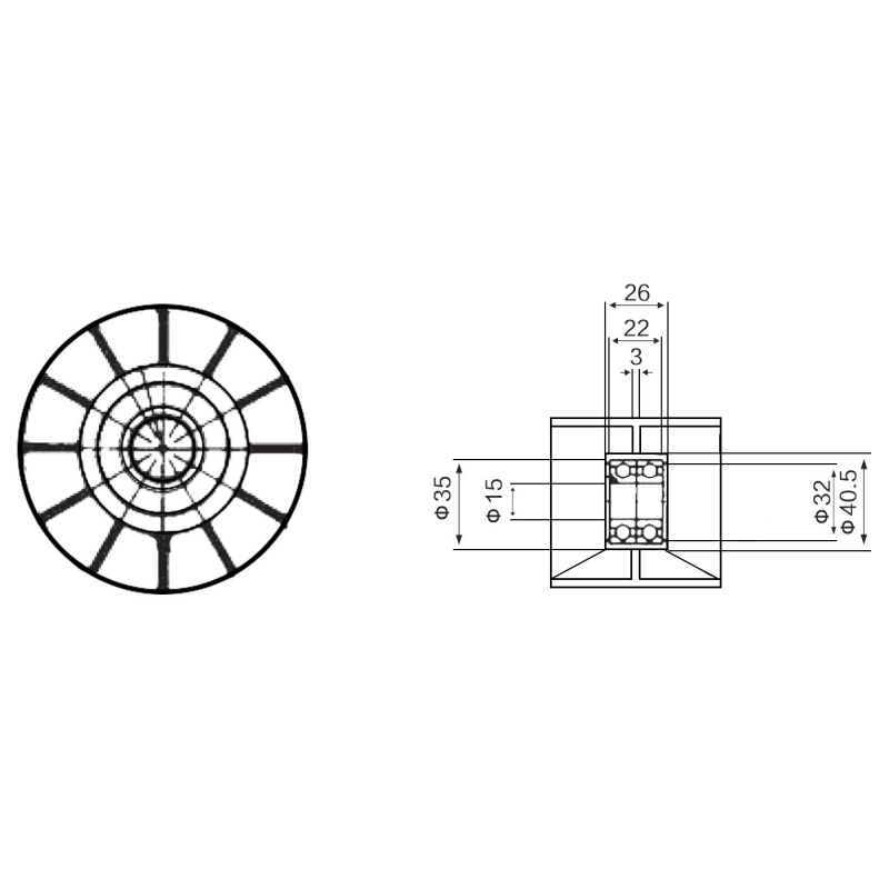 الأسطوانة الداعمة مصنوعة من النايلون كمادة رئيسية. يتمتع النايلون بمقاومة ممتازة للتآكل، والتشحيم الذاتي، ومقاومة التآكل، ومقاومة جيدة للصدمات. وهذا يسمح لأسطوانة الضغط بمقاومة التآكل أثناء الاستخدام طويل الأمد، وتقليل الحرارة والضوضاء الناتجة عن الاحتكاك، والحفاظ على أداء مستقر؛ تم تجهيز أسطوانة الدعم بمحمل كروي ذو أخدود عميق موديل 6202، والذي يتميز بهيكل بسيط، وسهل التصنيع، وله قدرة تحمل عالية. قوي؛ يبلغ القطر الخارجي وارتفاع أسطوانة الدعم 70 مم. هذا التصميم بالحجم يجعل أسطوانة ضغط الحزام مناسبة لضغط الحزام، والتوجيه، والمهام الأخرى مع مجموعة متنوعة من المعدات الميكانيكية.